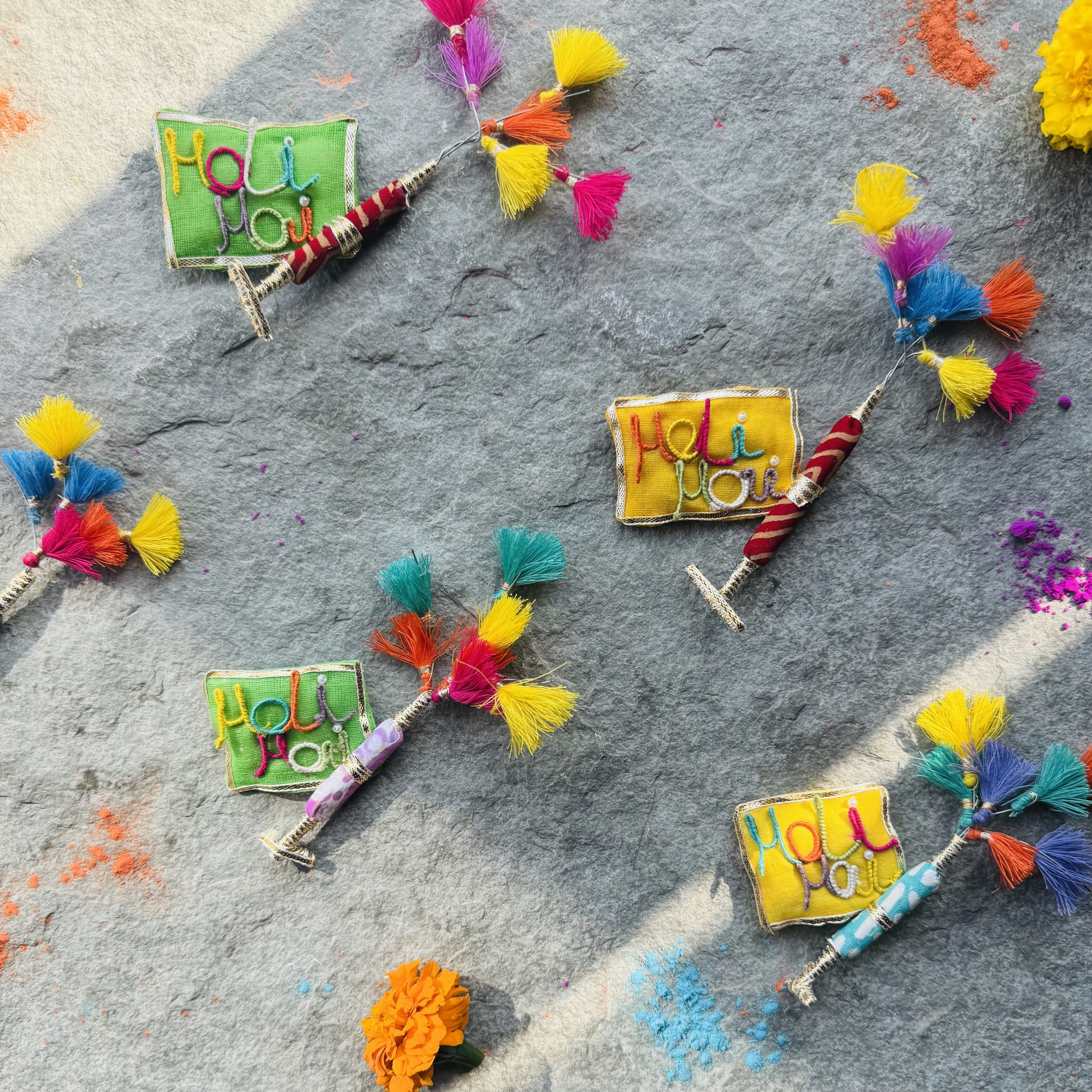 Handcrafted from waste textiles spreading colours of Holi can be worn on Holi.