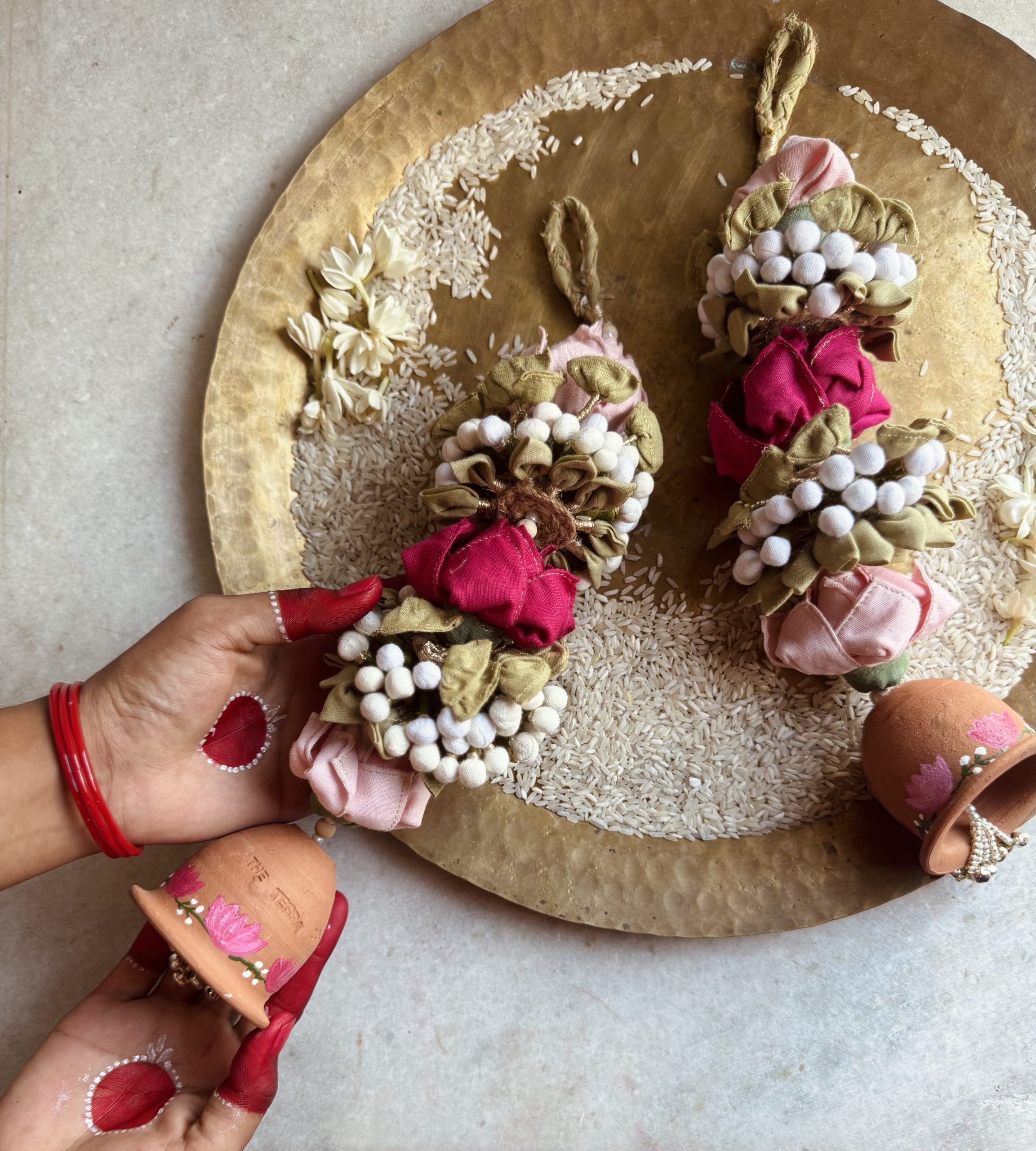 Delving into the symbolism of Toran, these hangings are more than decor—they welcome prosperity, love, and positivity into every Home. A Toran is more than decor it symbolises prosperity, love, and positivity. Traditionally made with kali, leaves and lotus, we’ve reimagined it with recycled textile waste, handcrafted into vibrant flowers and leaves. This craft reflects our grassroot tradition, where every creation carries emotion and meaning.