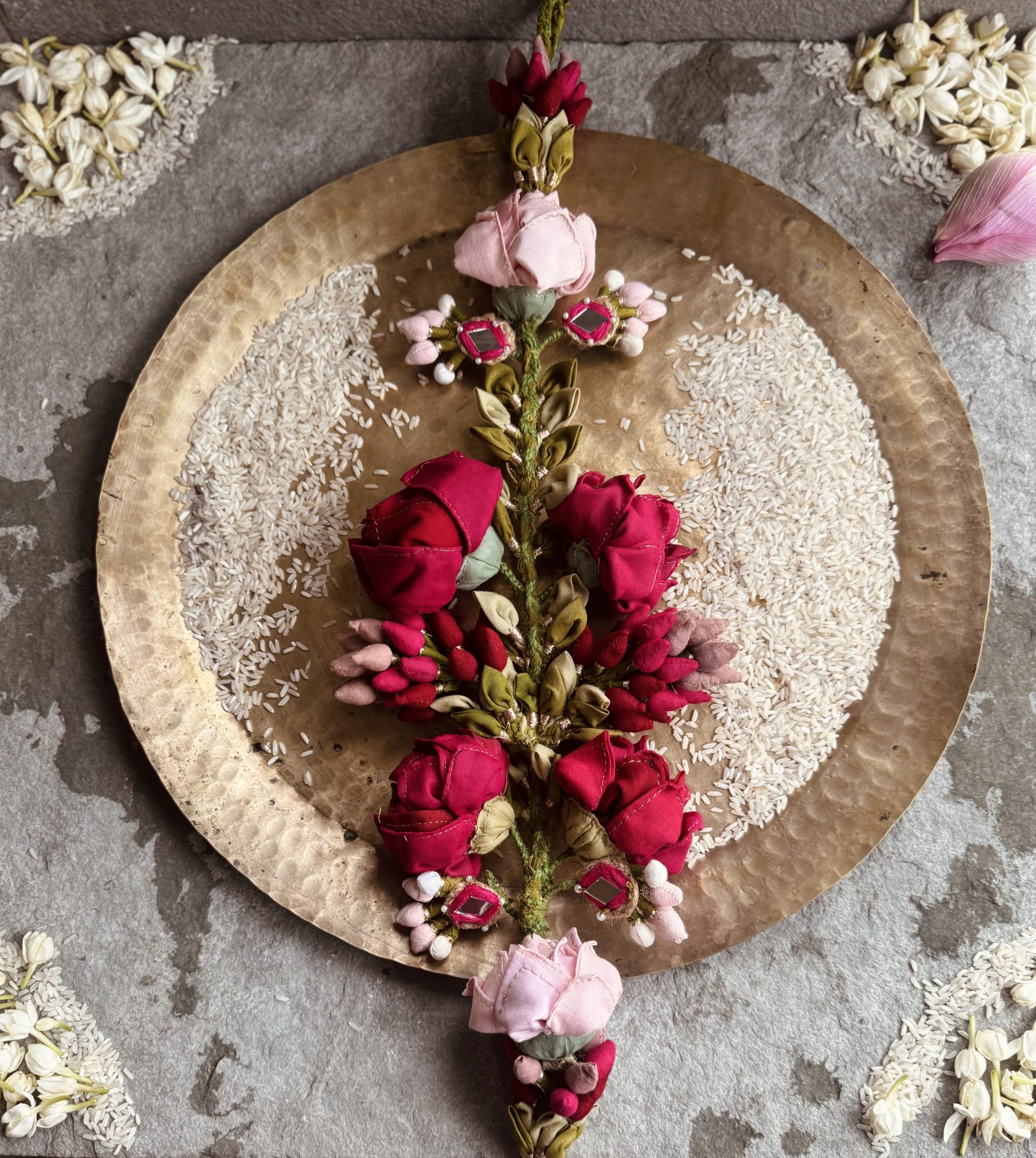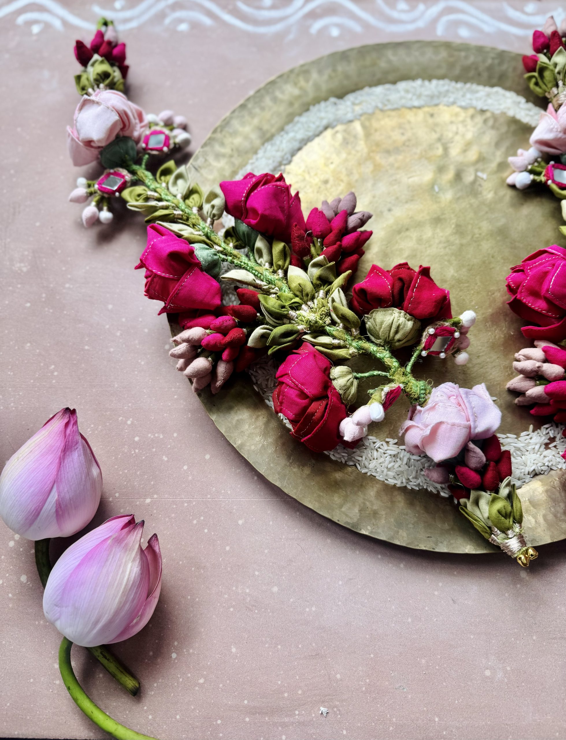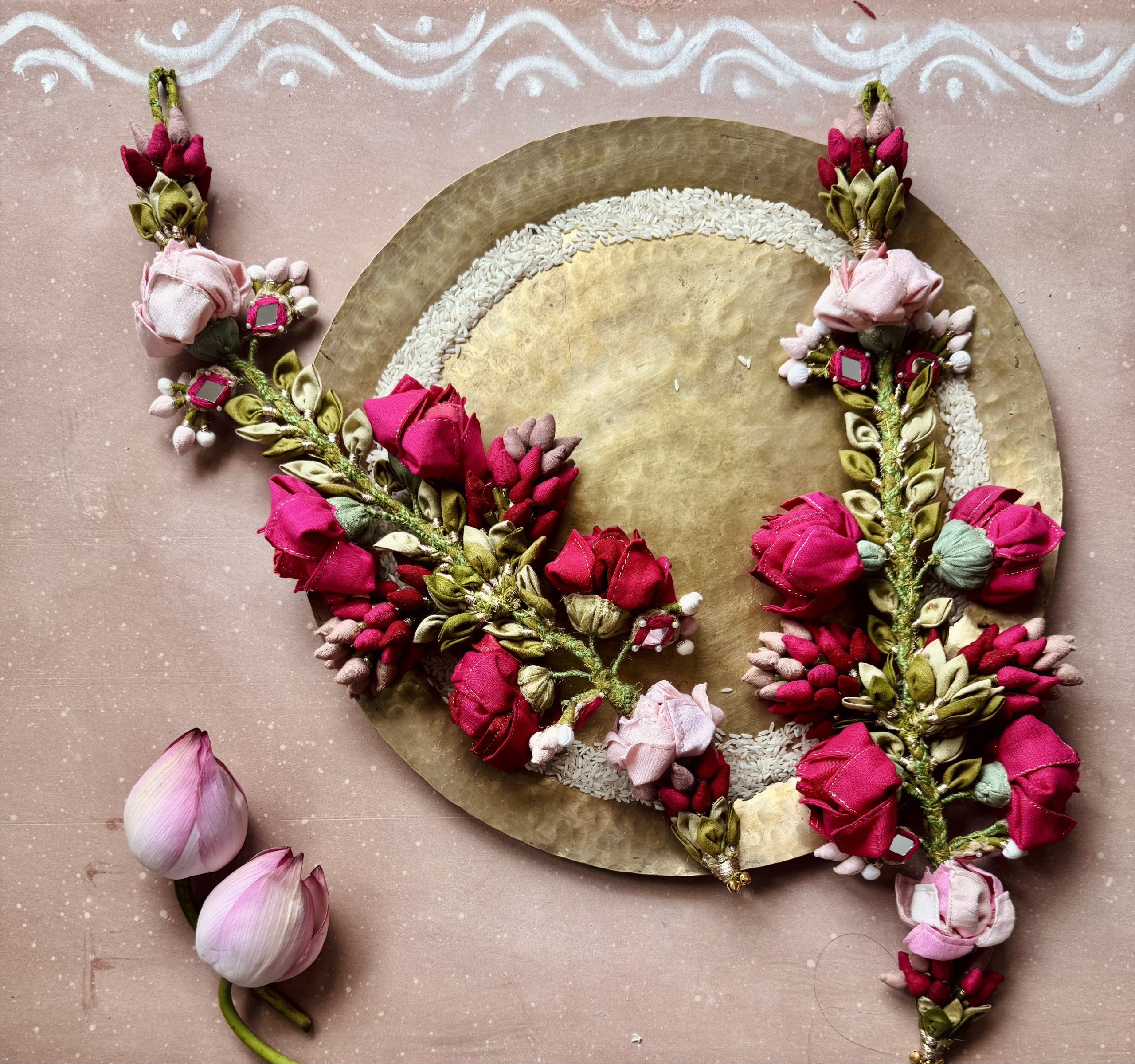Delving into the symbolism of Toran, these hangings are more than decor—they welcome prosperity, love, and positivity into every Home. A Toran is more than decor it symbolises prosperity, love, and positivity. Traditionally made with leaves and Lotus, we’ve reimagined it with recycled textile waste, handcrafted into vibrant flowers and leaves. This craft reflects our grassroot tradition, where every creation carries emotion and meaning.