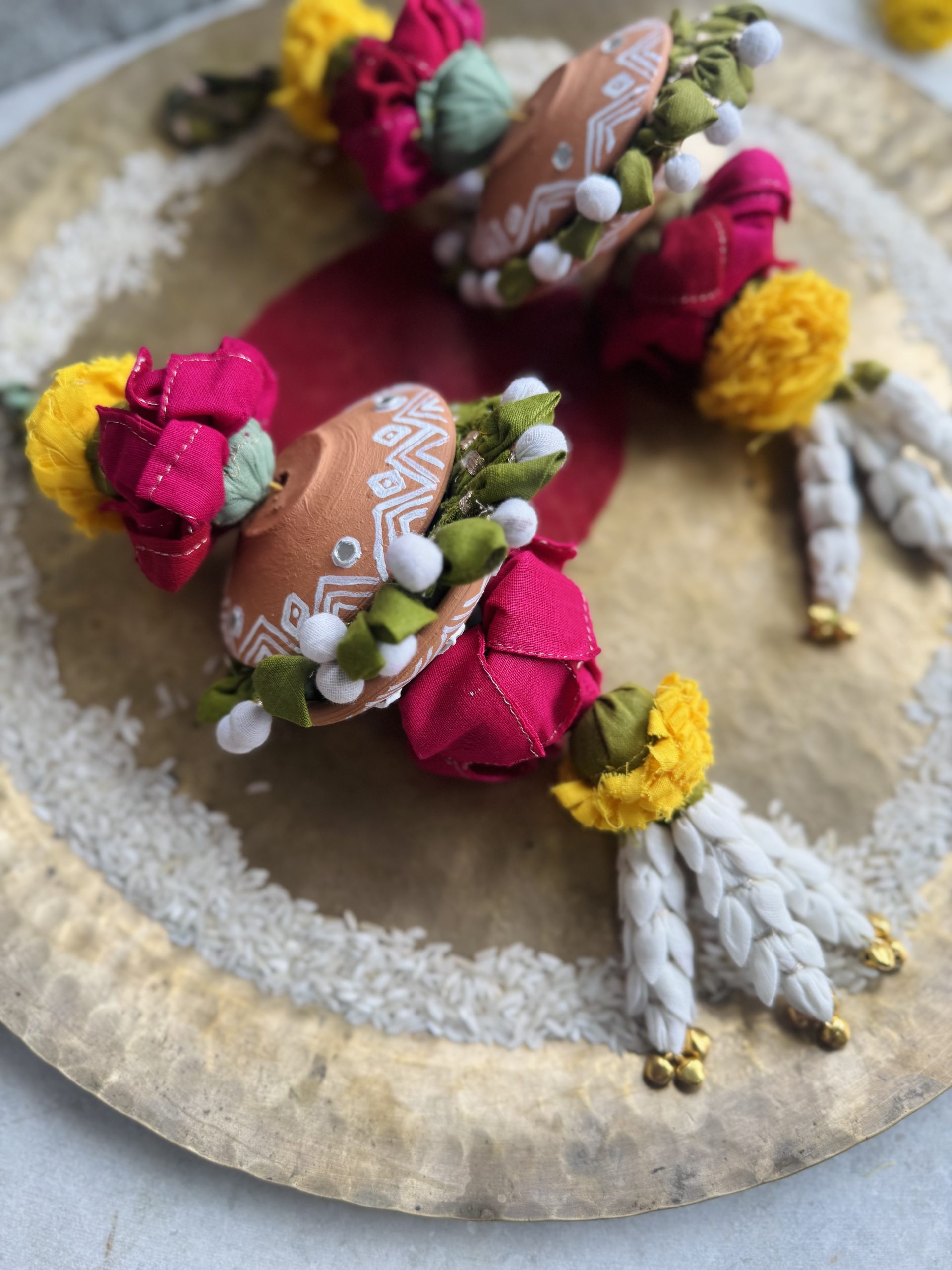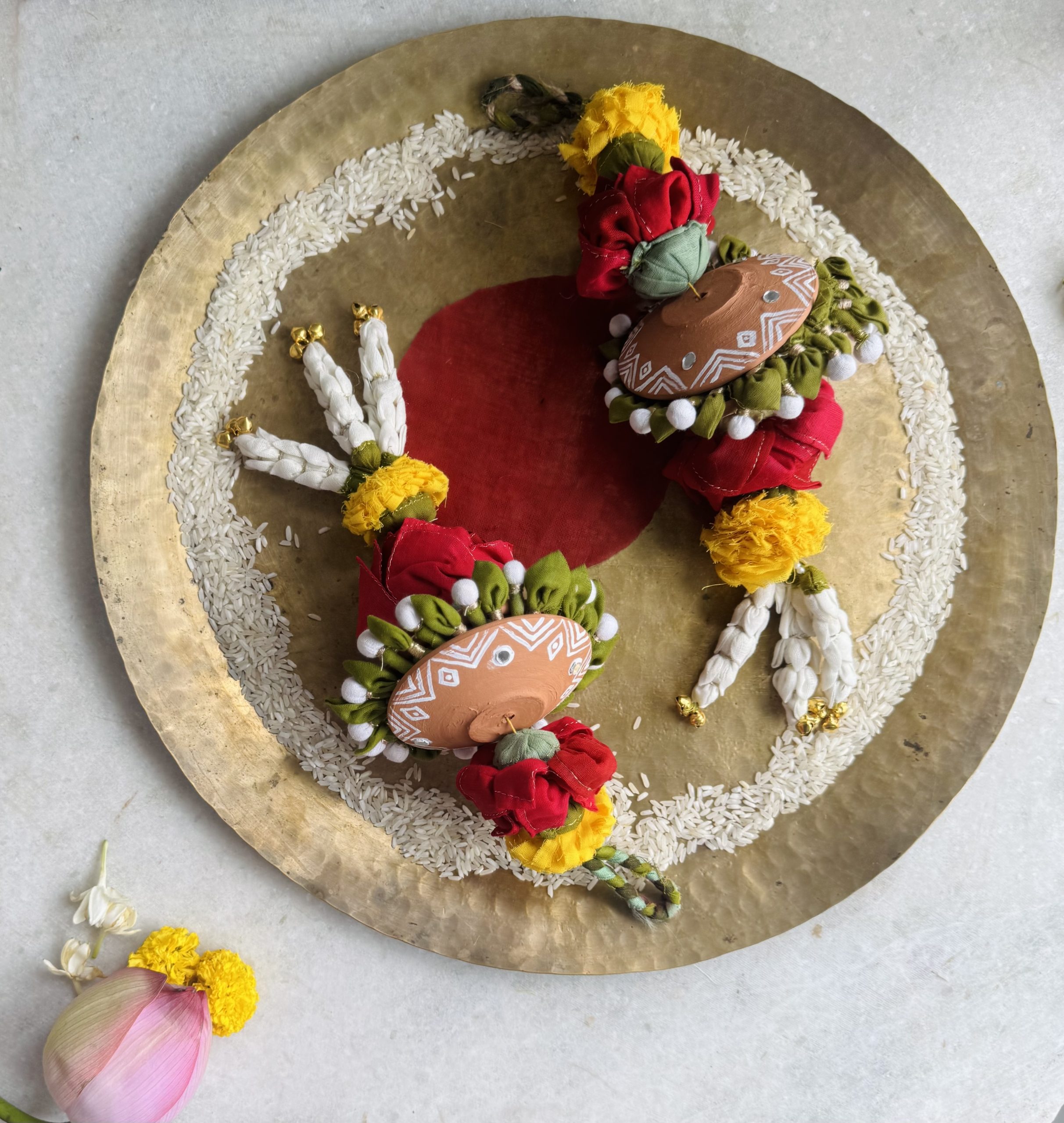 Delving into the symbolism of Toran, these hangings are more than decor—they welcome prosperity, love, and positivity into every Home. A Toran is more than decor it symbolises prosperity, love, and positivity. Traditionally made with Genda And Kamal, we’ve reimagined it with recycled textile waste, handcrafted into vibrant flowers and leaves. This craft reflects our grassroot tradition, where every creation carries emotion and meaning.